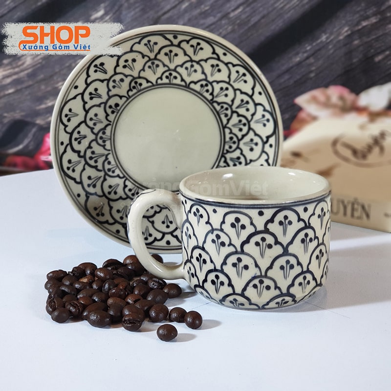 Ly sứ cafe tách lót được xem là một trong những mẫu ly sứ đẹp không thể thiếu của các quán cafe. Loại ly sứ này có thiết kế nhỏ gọn. Dung tích từ 250ml trở xuống nên phù hợp để phục vụ các thức uống như Cappuchino, cafe, espresso…