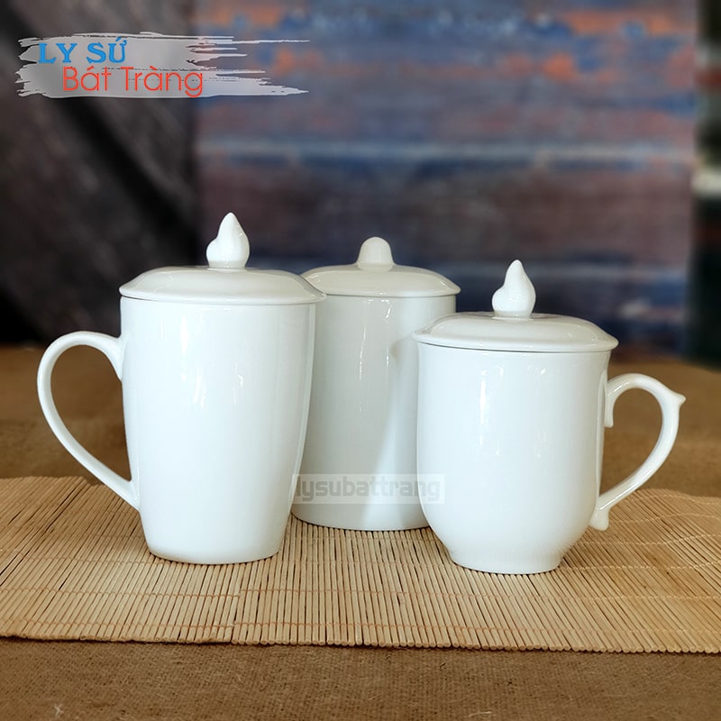 Ly sứ trắng có nắp đẹp tại Xưởng Gốm Việt