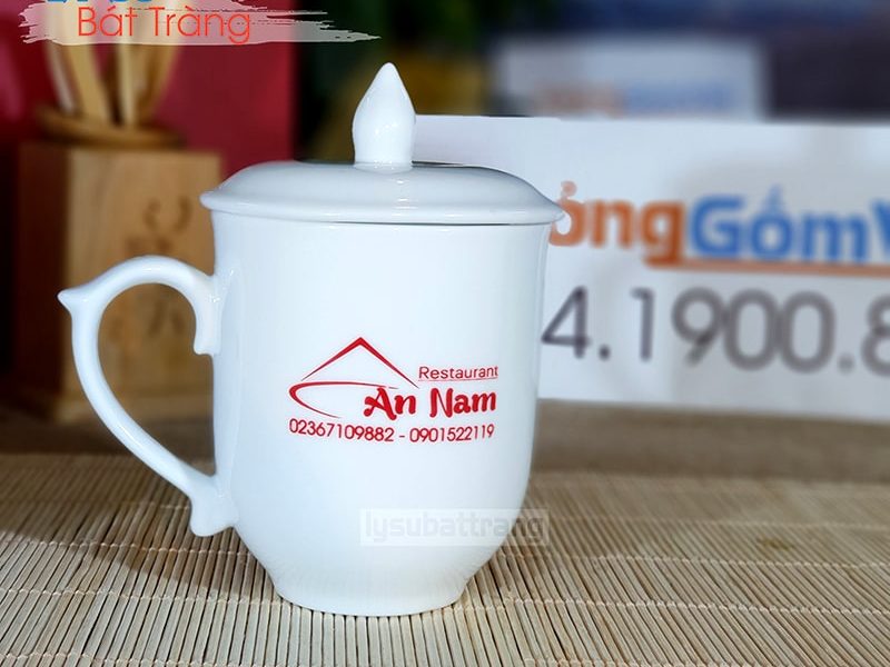 Ly sứ in logo có nắp thường được các doanh nghiệp chọn làm quà tặng nhiều nhất. Bởi vì sản phẩm lịch sự và rất đẹp mắt, khi đóng hộp hay để đơn lẻ vẫn lấy được lòng khách hàng.