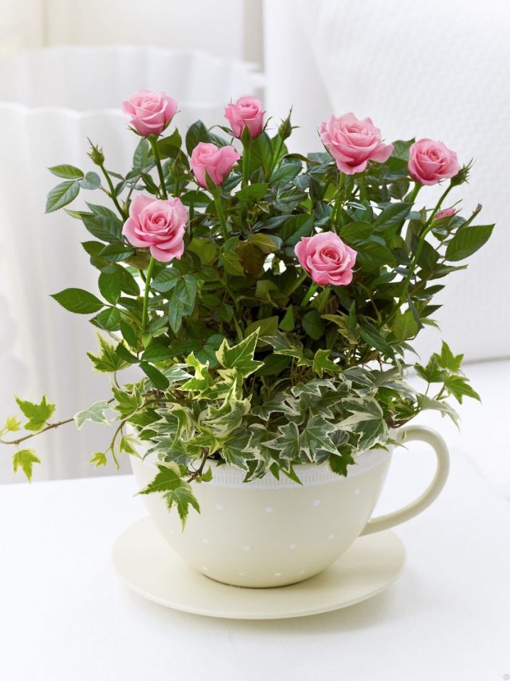 Màu trắng sáng của ly sứ sẽ càng tôn lên vẻ đẹp của những bông hoa, chỉ cần có ý tưởng, chúng ta sẽ có ngay một bình hoa mini xinh xắn.