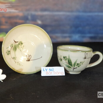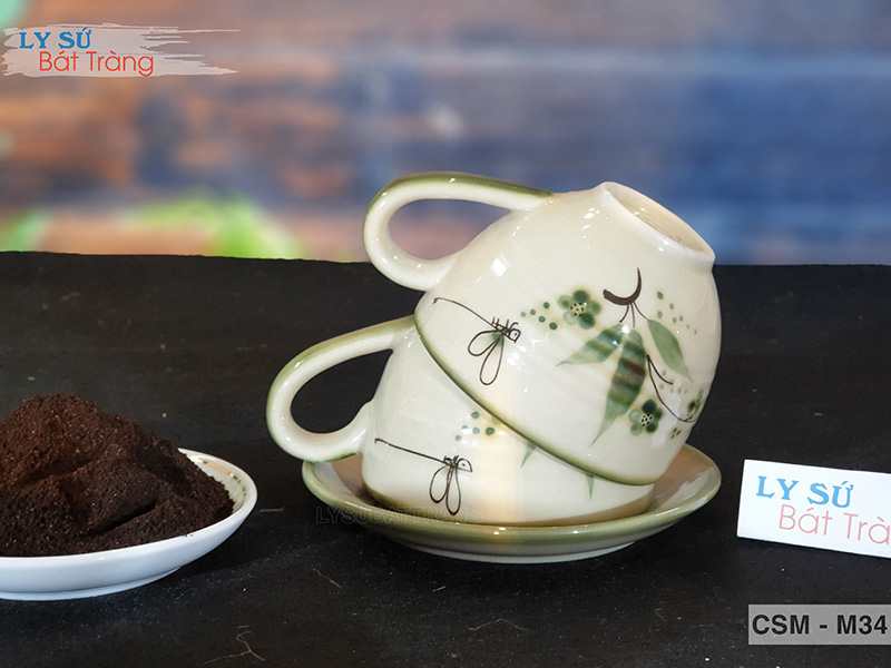 Hoa văn trên chiếc cốc capuchino trắng ngà CSM – M34 rất đặc biệt. Những nét vẽ thanh thoát, mộc mạc tạo thành hình cành tre, bông hoa, chuồn chuồn đều được những người thợ gốm vẽ tay thủ công, sử dụng màu men tự nhiên và trải qua quá trình nung ở nhiệt độ cao nên hình vẽ không phai màu và an toàn với sức khỏe người tiêu dùng.