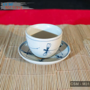 Cốc quả lê loe CSM – M31 có màu men trắng ngà, họa tiết chuồn chuồn đen vẽ tay giúp sản phẩm mang nét hoài cổ nhưng vẫn không kém phần sang trọng. Chính vì đặc điểm này mà sản phẩm được nhiều quán cà phê và nhiều nhà hàng, khách sạn sang trọng ưa chuộng.