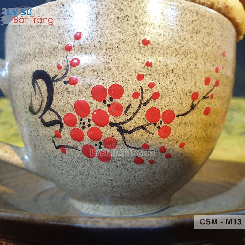 Được sản xuất trực tiếp tại xưởng gốm Bát Tràng, Gia Lâm, Hà Nội, mỗi chi tiết của chiếc cốc sứ màu cốc bầu CSM – M13 được gia công rất tỉ mỉ, tinh tế. Họa tiết hoa đào trên sản phẩm được vẽ thủ công hoàn toàn và được nung kĩ ở nhiệt độ cao nên sẽ không lem, không phai trong suốt quá trình sử dụng.