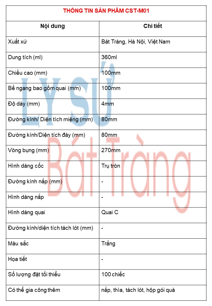 TẢI BÁO GIÁ CỐC SỨ TRẮNG CST-M01 TỪ NHÀ SẢN XUẤT NGÀY [time]