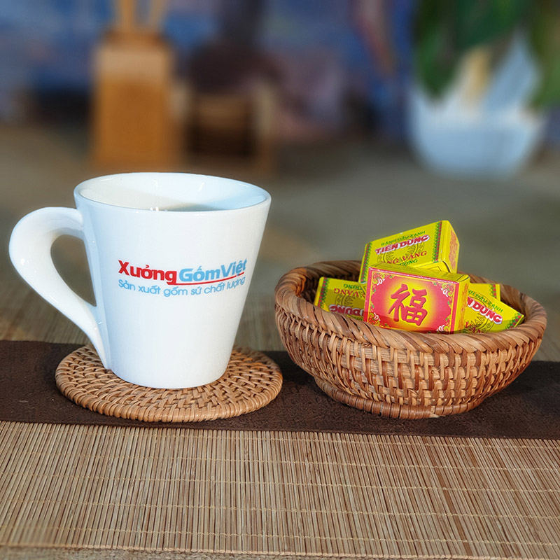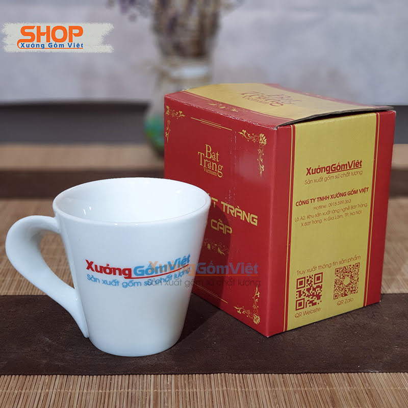 | Tên | Ly sứ trắng quai lượn độc đáo | Nguồn gốc xuất xứ | Gia Lâm – Bát Tràng – Hà Nội |