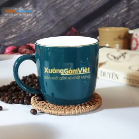 Cốc sứ trắng Bát Tràng in logo Xưởng Gốm Việt